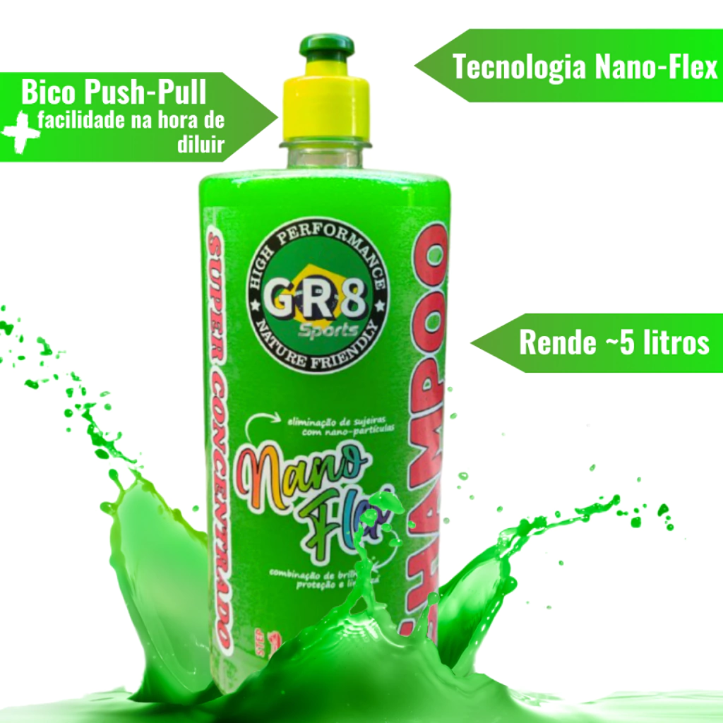 - dilua o GR8SHAMPOO CONCENTRADO, 1L rende 4L ao total. Utilize a embalagem para seguir a quantidade correta